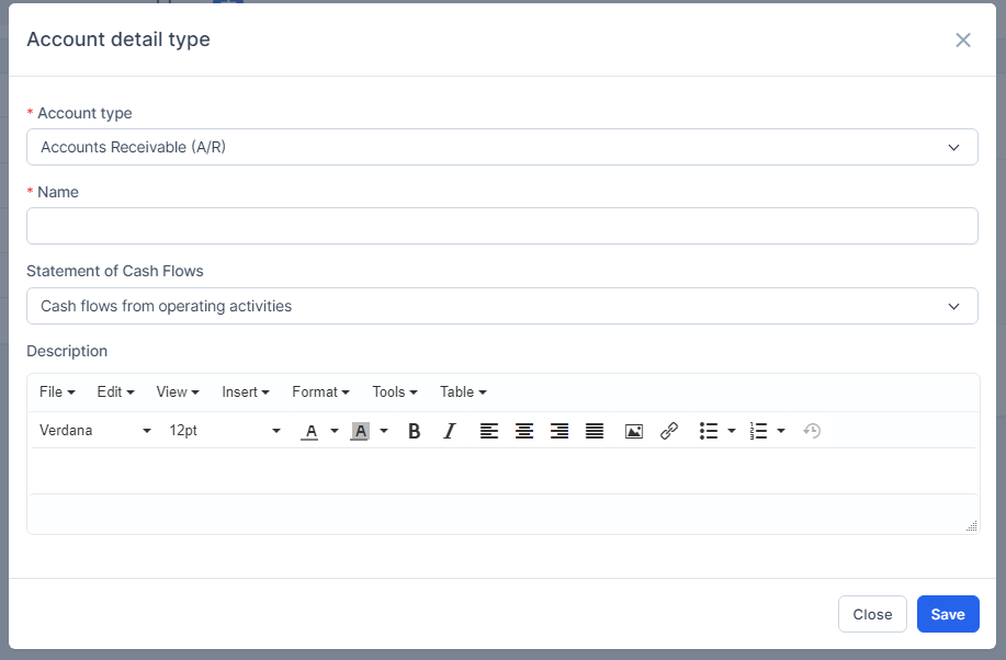 Used to add a detail type that is not available in the system. This detail type is used to create an account.