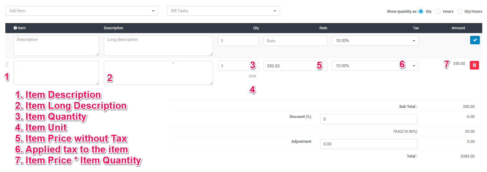 Items is Accentra feature that will allow you to create predefined items which will speed up the process when creating new invoices/estimates/proposals.