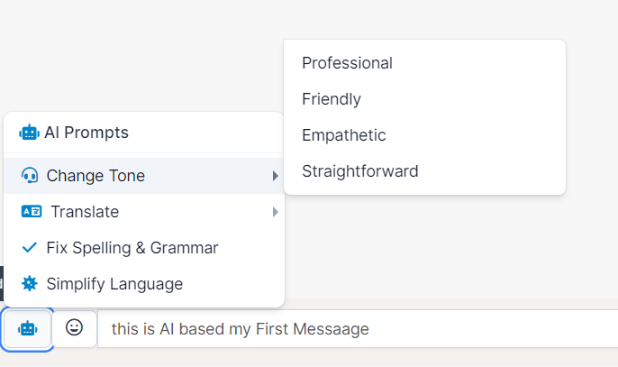 - The AI will process your message according to the selected feature and the selected AI model, and the updated text will appear in the input field.