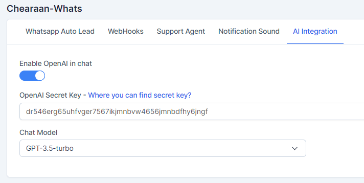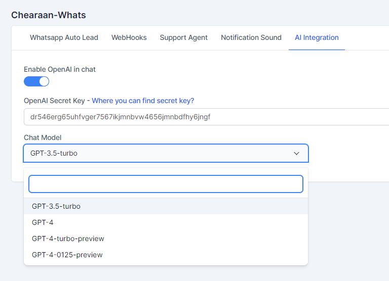 The AI Integration feature allows users to enhance their Chearaan-Whats experience by integrating AI capabilities such as language translation, tone adjustments, and grammar corrections. This feature leverages various OpenAI models, providing a range of options to tailor the AI's behavior according to your needs.