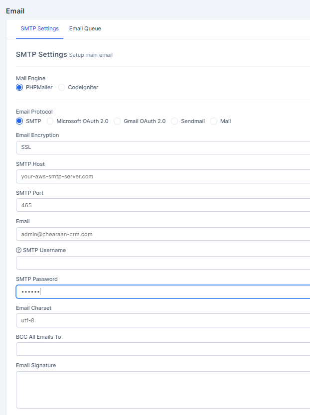 The email you will enter will be used as FROM email which when using AWS is required. Find the configuration below.