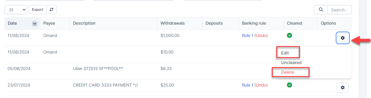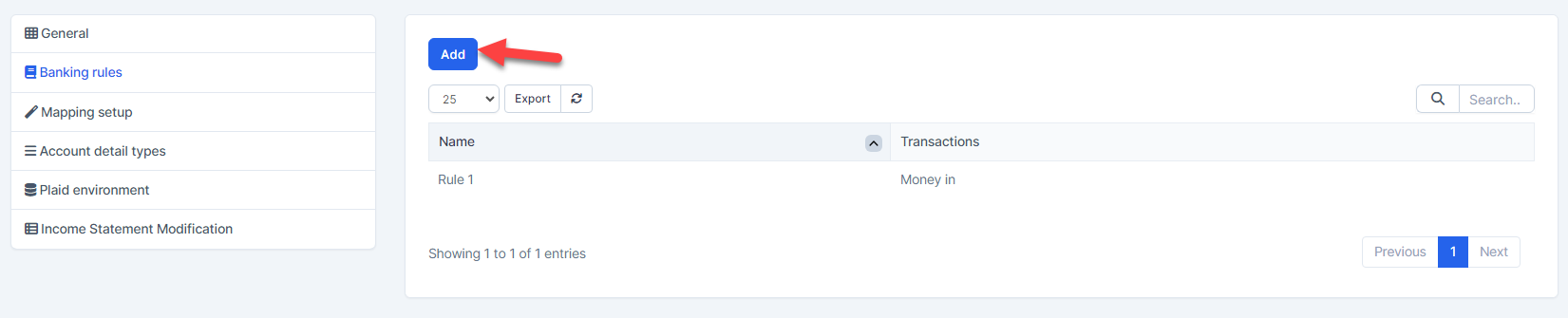 The banking rules page is used to create and manage data for automatic classification of common recurring transactions.