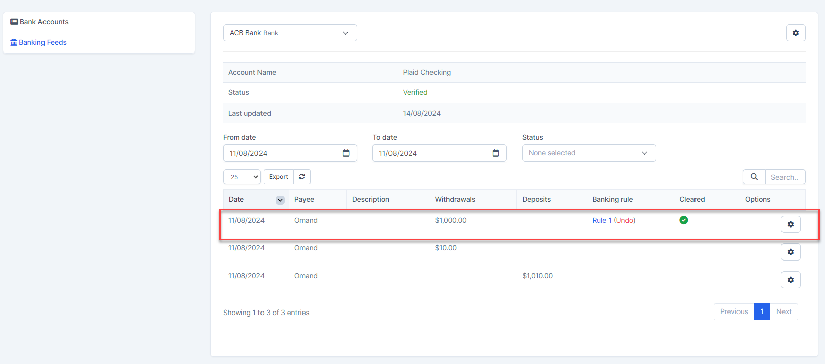 - Step 1. Go to the Setting menu under the Accounting module in the left sidebar -> Select the Banking rules menu.