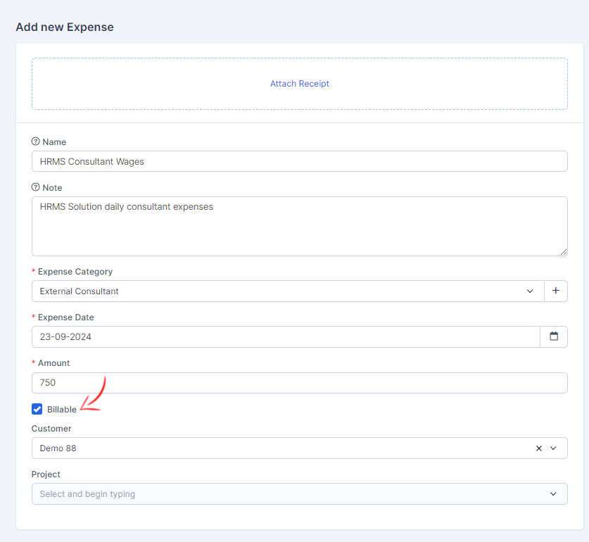 By default the expense amount will be in your base currency. If you choose this expense to be billable the currency will be changed according to the customer currency.