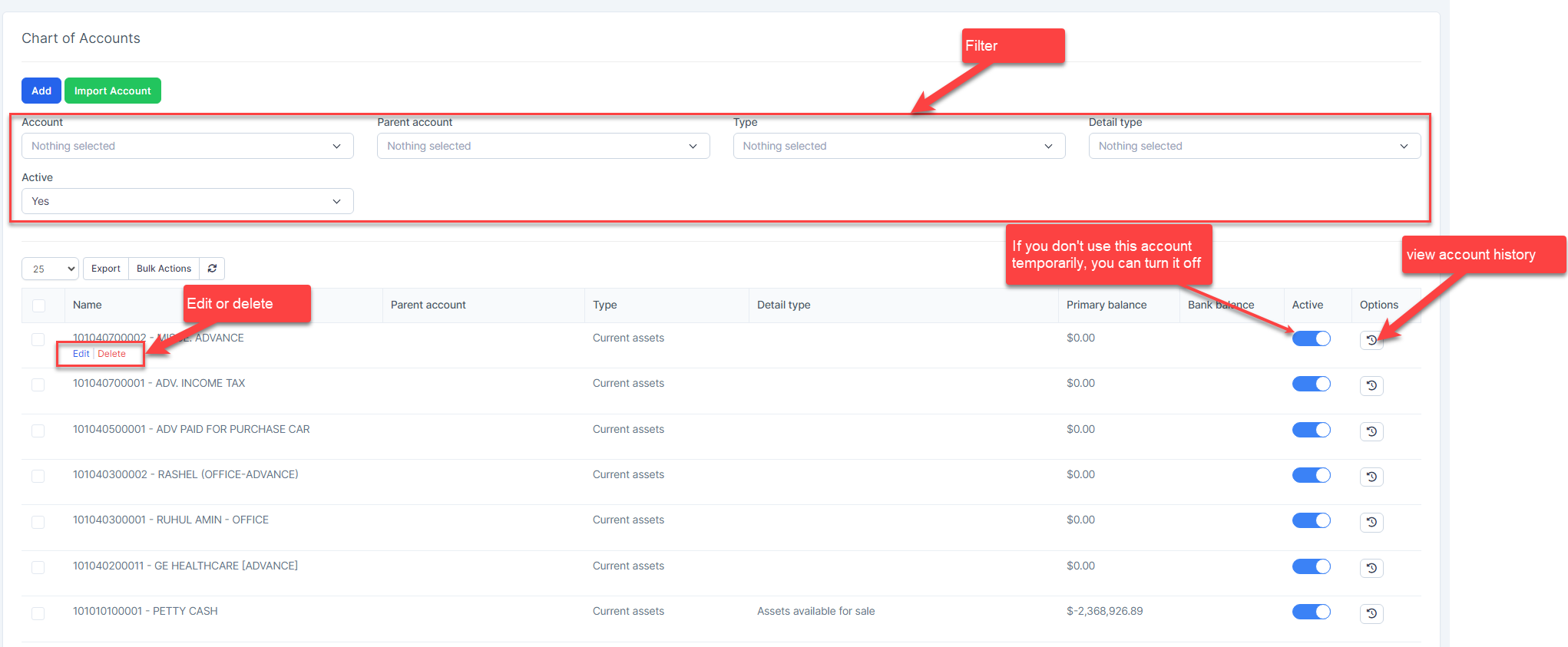 - Step 1. Go to Chart of Account menu under the Accounting module in the left sidebar