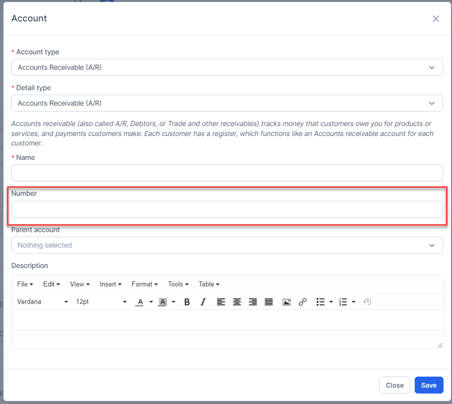 If you want to enter the number for the account, and show the account number on the Chart of account , reports and transactions page, you must enable Enable account numbers and Show account numbers.