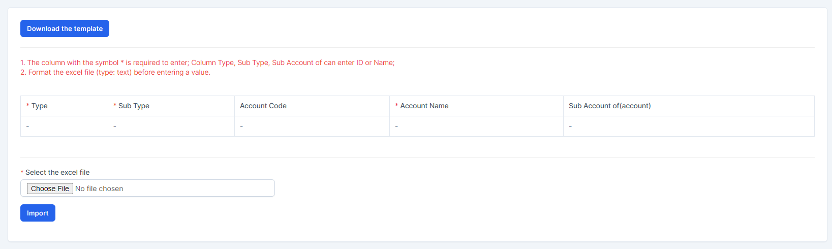 - Step 2. To ensure successful import (correct format, full columns) you should download the template file by clicking Download the template button