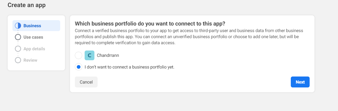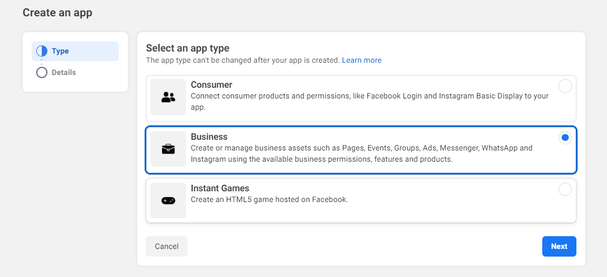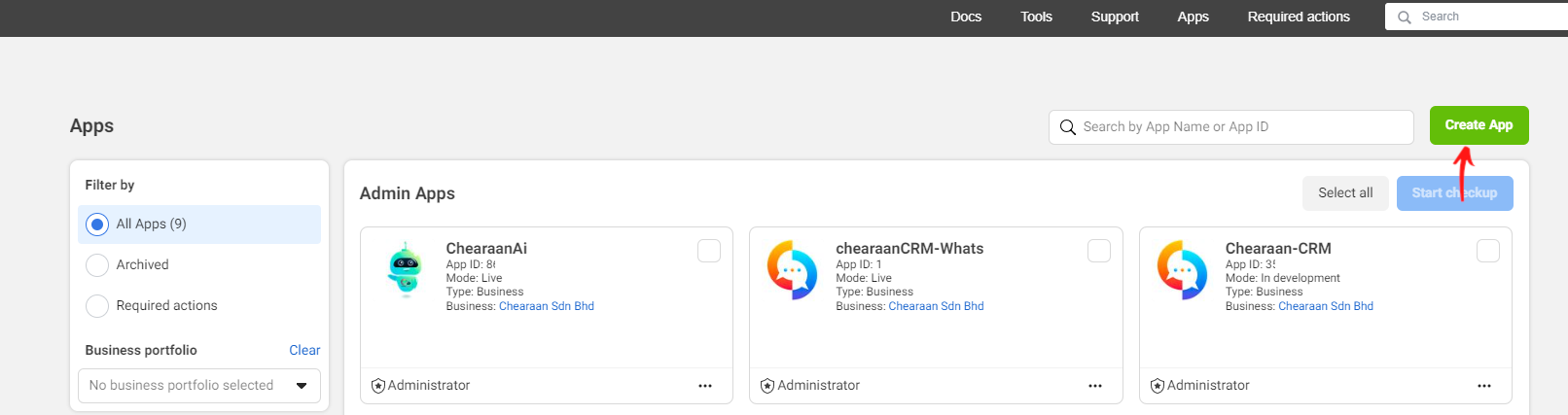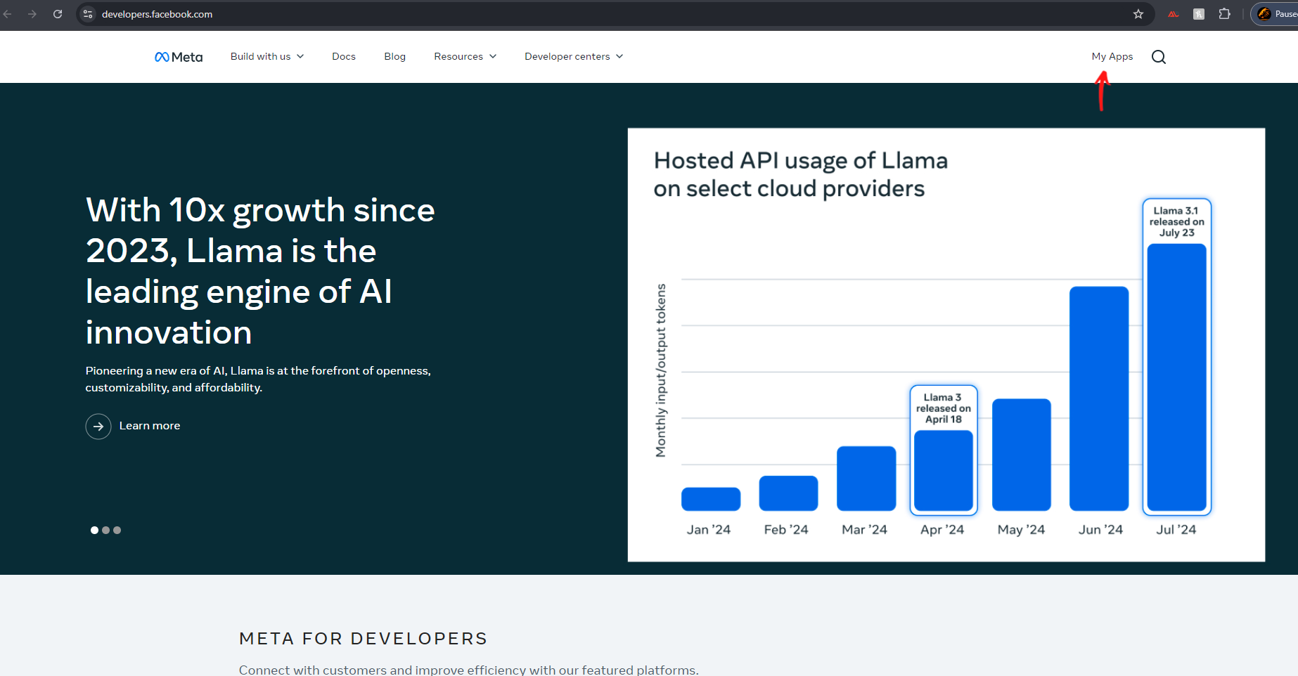 The first step in creating a WhatsApp bot is to link it to our module. Additionally, you must create a WhatsApp Cloud API in order to link your bot. Visit Facebook for Developers to start a new app, then select the page's "My Apps" tab.