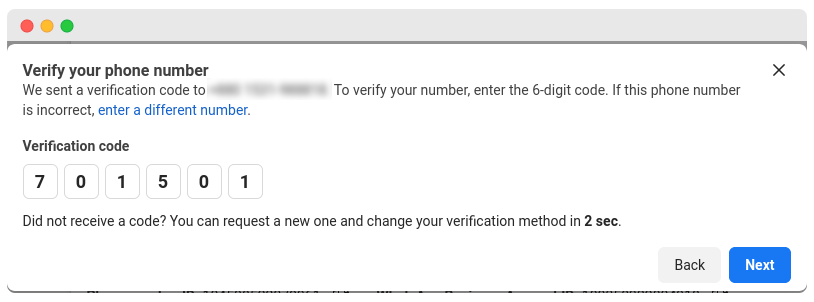 After providing your phone number and selecting the verification option, click the next button. Verify your phone number.