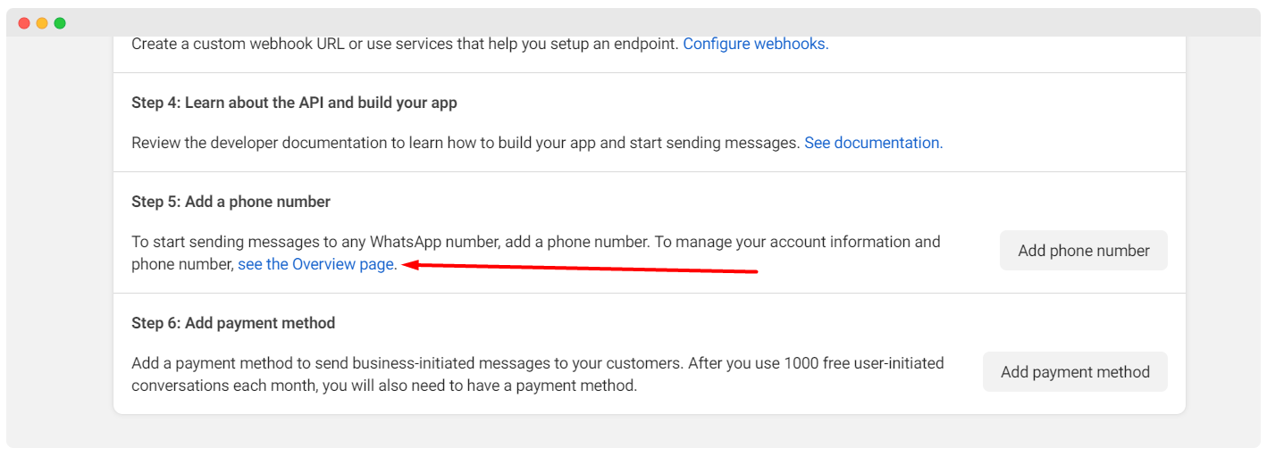Collect a permanent access token to connect your bot. In step 5, click the "See the overview page" button.