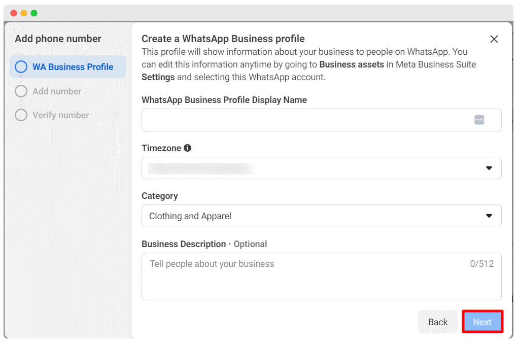- WhatsApp Business Profile Display Name: Enter a display name.