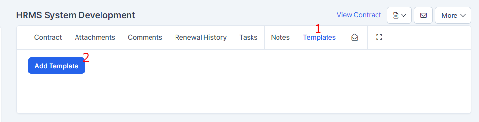 You can create a contract template while viewing the contract by clicking on the Templates tab and then click on the Add Template button.