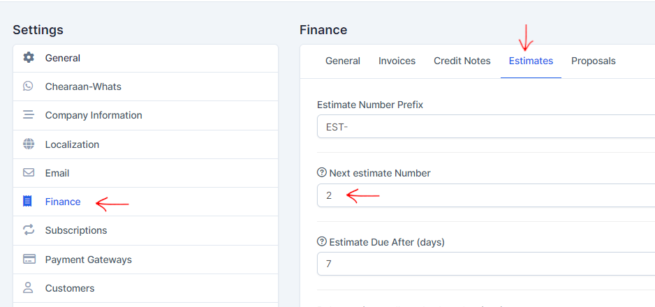 This number its fetched from Setup->Settings->Finance->Estimates – Next Number the number its auto increment but you can change the next number in Setup->Settings->Finance->Estimates.