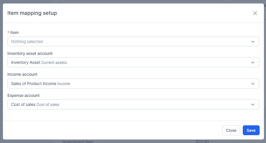 Step 3. In the Item mapping setup popup, fill in the following details: