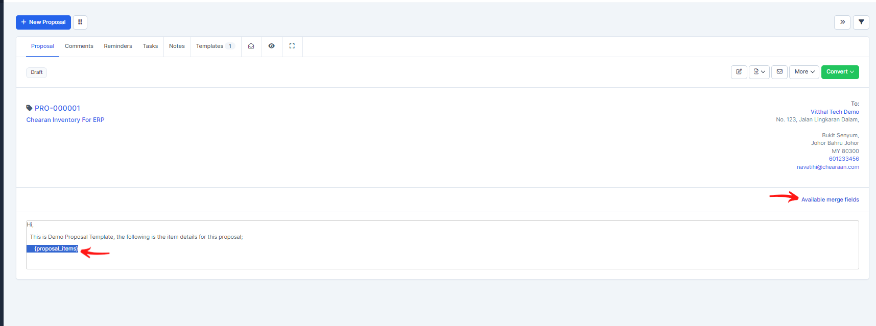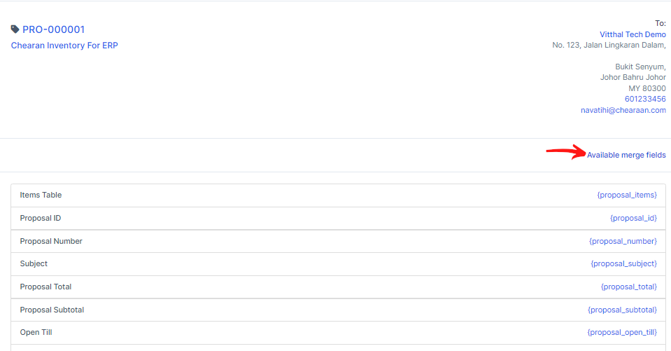 To prevent creating the same content, again and again, you can use the merge fields feature by clicking on the link Available Merge Fields and when you will need to create new similar proposal you need to copy the existing one.