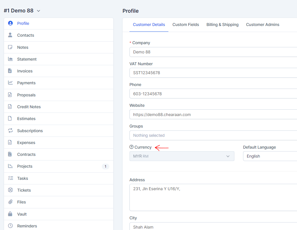 Note that if the customer have already recorded transactions you wont be able to change the currency. You need to delete all previous transactions to change the currency, once the transaction is recorded ability to change the customer currency will be disabled.