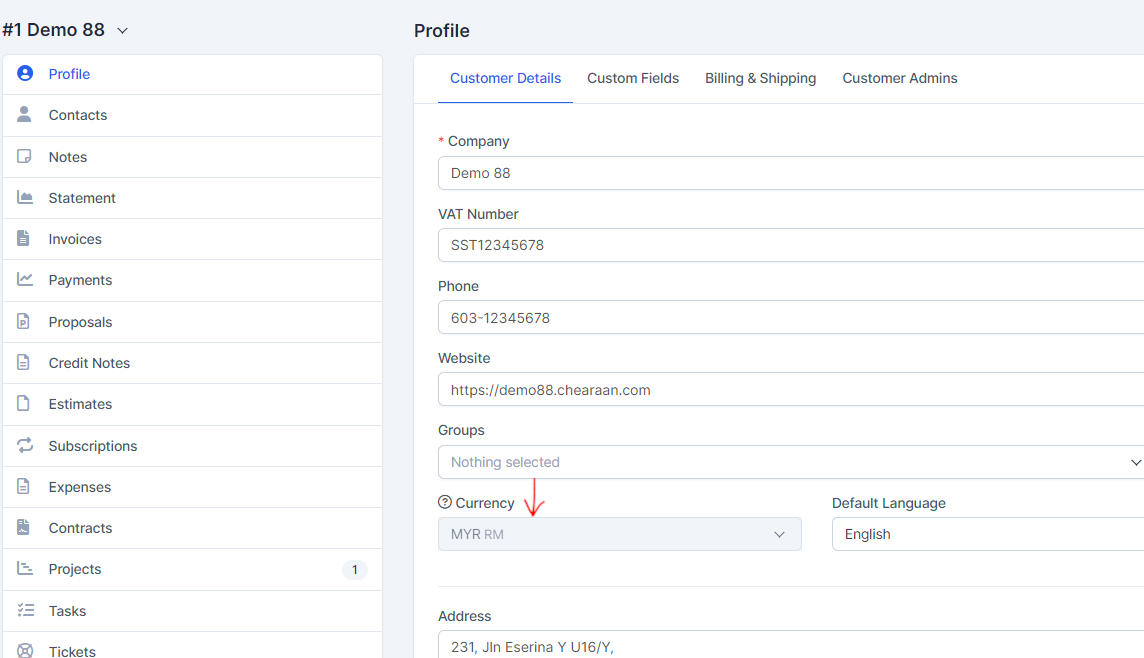 Accentra by default record all transactions (invoices, estimates, expenses, proposals) in the base currency.