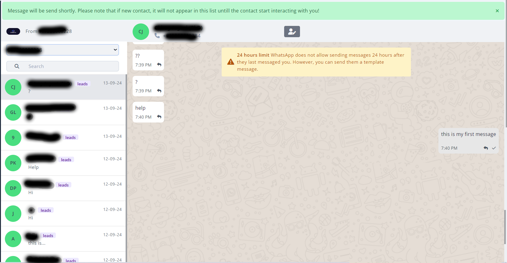 This shows the contact’s name, phone number. It helps you to quickly identify the person they are chatting with.