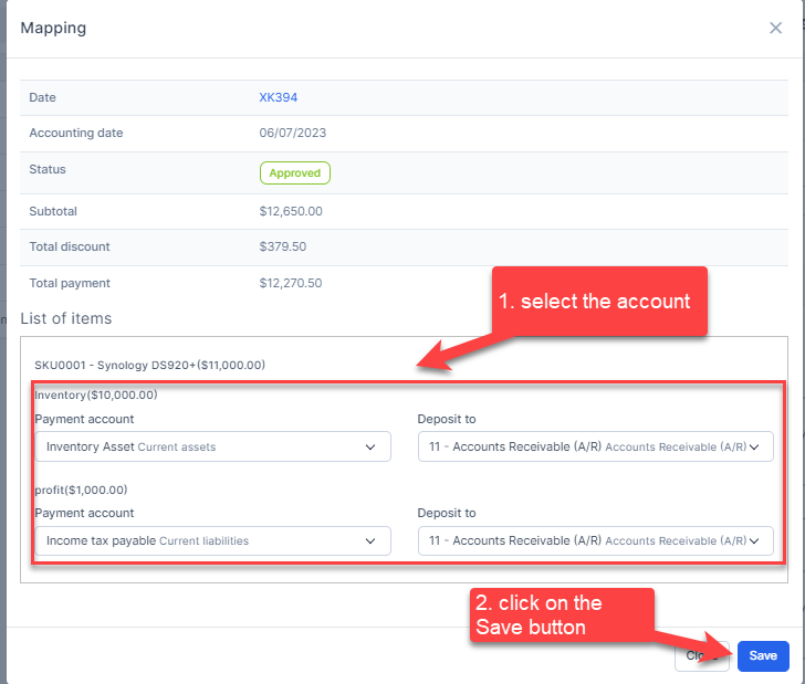 - Step 1. Go to Settings menu under the Accounting module in the left sidebar -> Select the Mapping setup menu -> Select the Inventory tab -> Enable the Inventory delivery voucher mapping setup and select the payment account and deposit to -> Click on the Save button