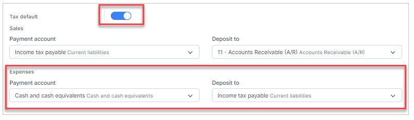 - Step 2. Enable the Tax default -Expense mapping setup so that the total tax amount of the inventory receiving voucher will be mapped to this configuration. if this configuration is not enabled, the tax of the inventory receiving voucher is not mapped to any accounts.