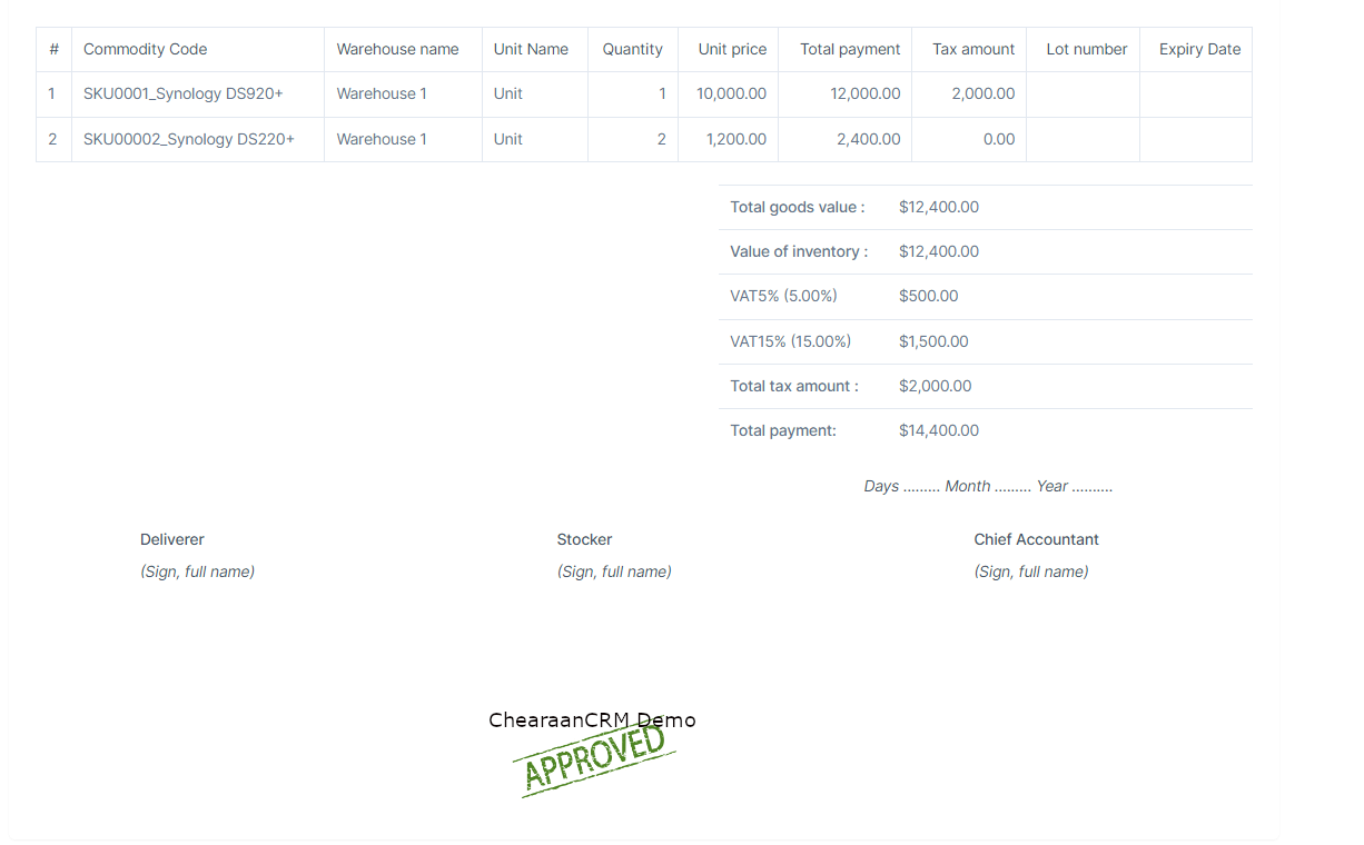 - Step 3. Create the inventory receiving voucher and approve it.