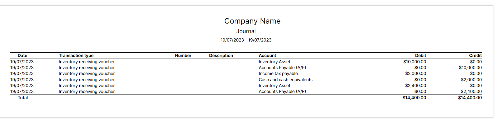 And this inventory receiving voucher is displayed in the report.