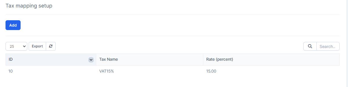 - Tax mapping setup: Used to set up automatic mapping for special taxes. The special taxes of invoices and expenses will map to this configuration.