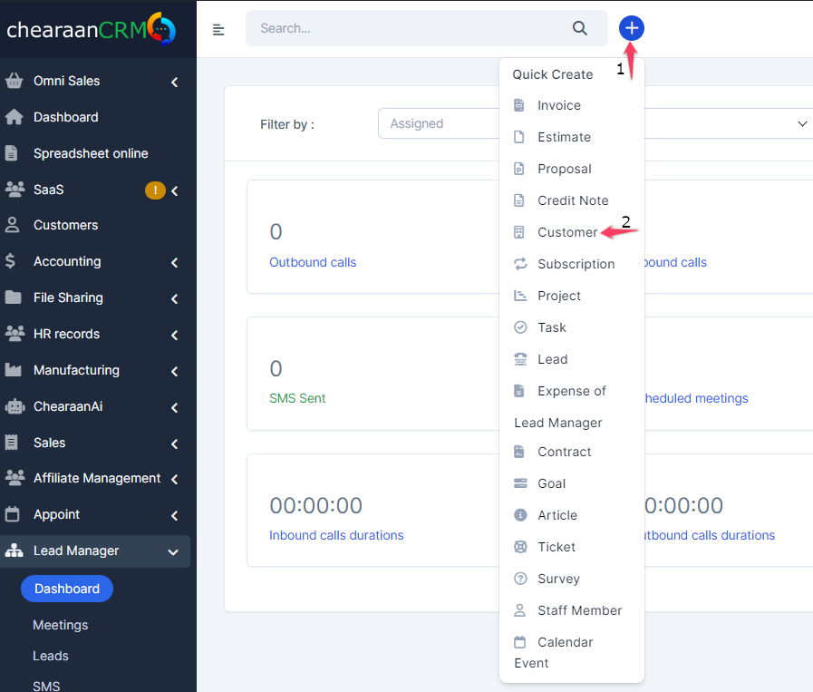 Login to dashboard click customers and on the left side there is a button New Customer.