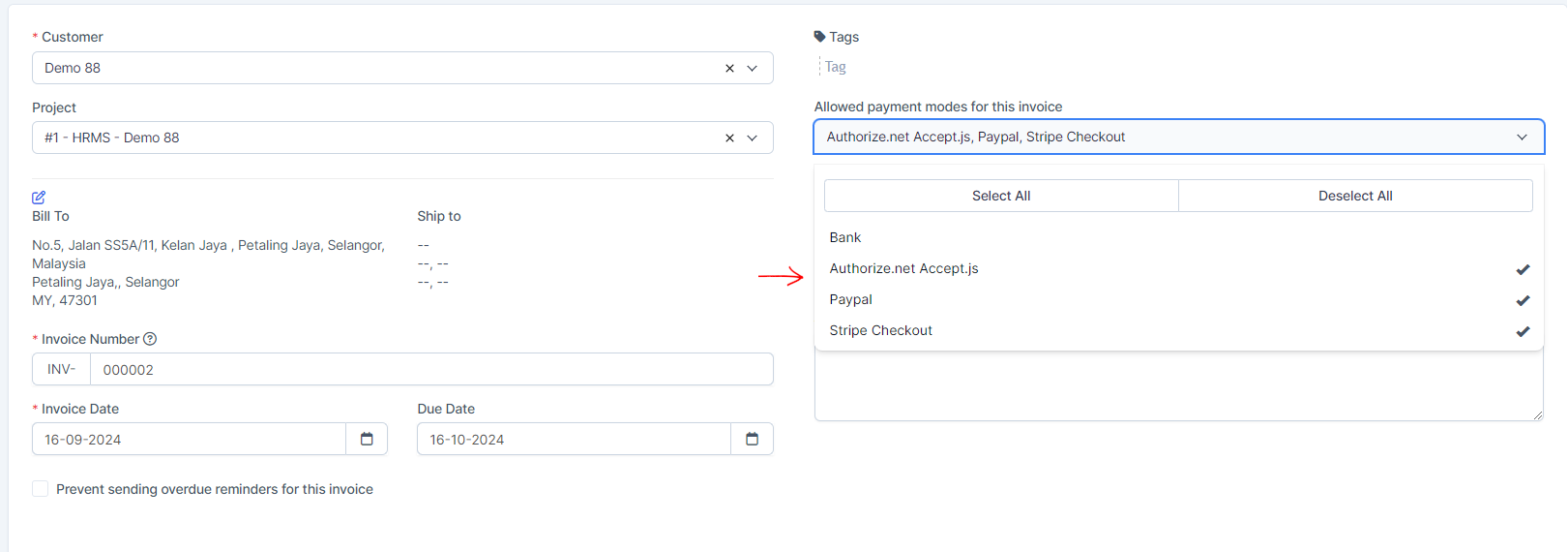 1. Make sure that you have checked the payment mode for this invoice.