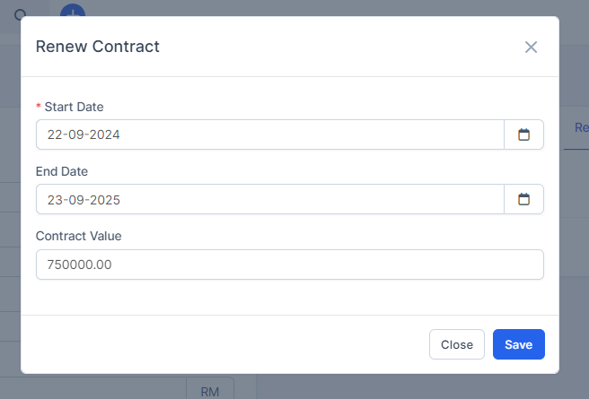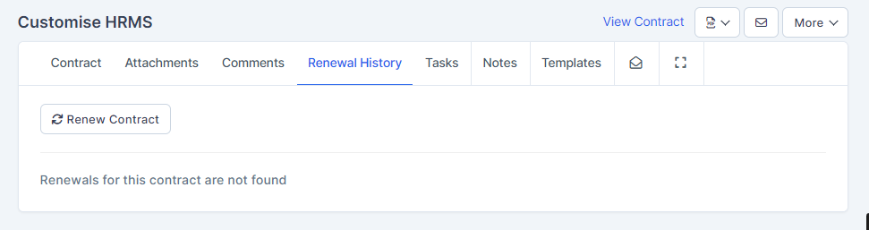 You can renew contact by clicking on edit contract and on the right upper side click Contract Renewal History and click Renew Contract.