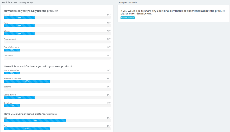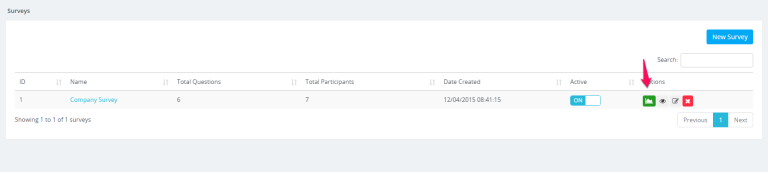 While listing survey results click on the chart button on the right side. All results from this survey will be available to you.